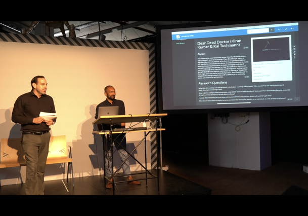 “The collaborative research between dancer Kiraṇ Kumār and dramaturg Kai Tuchmann is towards the making of 'Dear Dead Doctor', a work of digital and documentary theatre. In the form of an open letter to Kiran´s late grandfather, who was the first doctor of western medicine in his family, the project explores performative strategies of bringing medical and somatic knowledges into dialogue on stage. This address to the doctor is conceived through Kiraṇs grandchild: a parthenogenetic, proto-progenic being (P3B). P3B will be digitally materialized by drawing on 'data points' from yogic, dance and martial embodied practices. 'Dear Dead Doctor' re-imagines what 'being human in the world' could imply in its continuity across pre-modernities and futurities.”